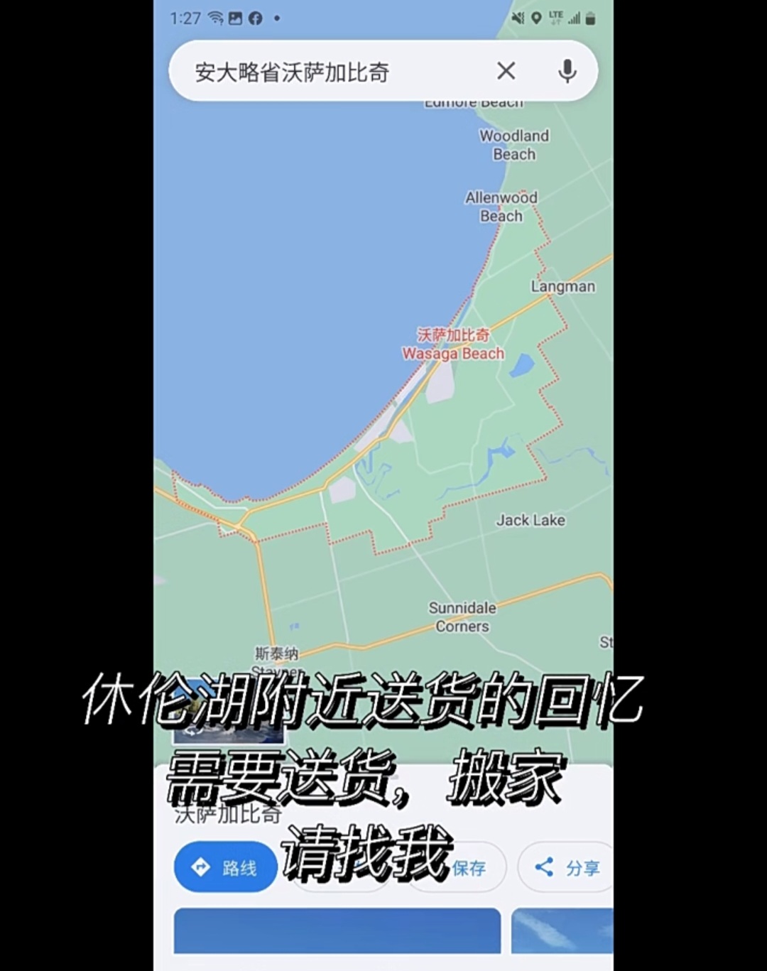 我们将送一批橱柜和衣柜到那里的度假屋,这是我们公司的一项业务。我们开车上了400号公路,途经巴里Barrie,然后沿着美丽的休伦湖一路前行。虽然这是一次长途旅行,但我却很享受这段旅程。我欣赏着沿途的风景,看着蓝天白云和湖水的美景,这让我感到宁静和舒适。